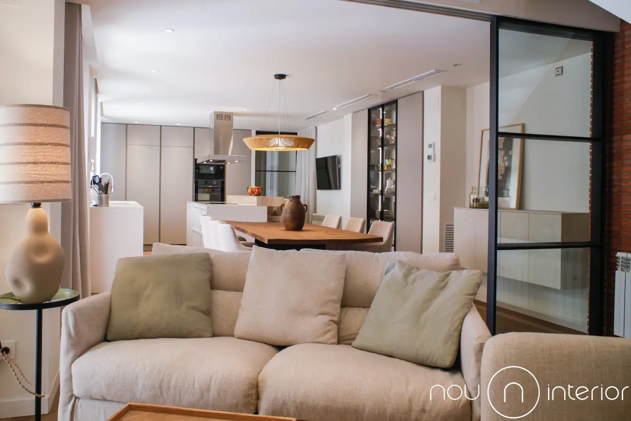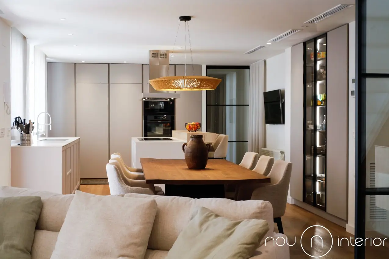 La principal actuación ha unido cocina y salón en la planta inferior. En la superior se ha favorecido la distribución para crear un dormitorio principal incluyendo baño privado y vestidor.