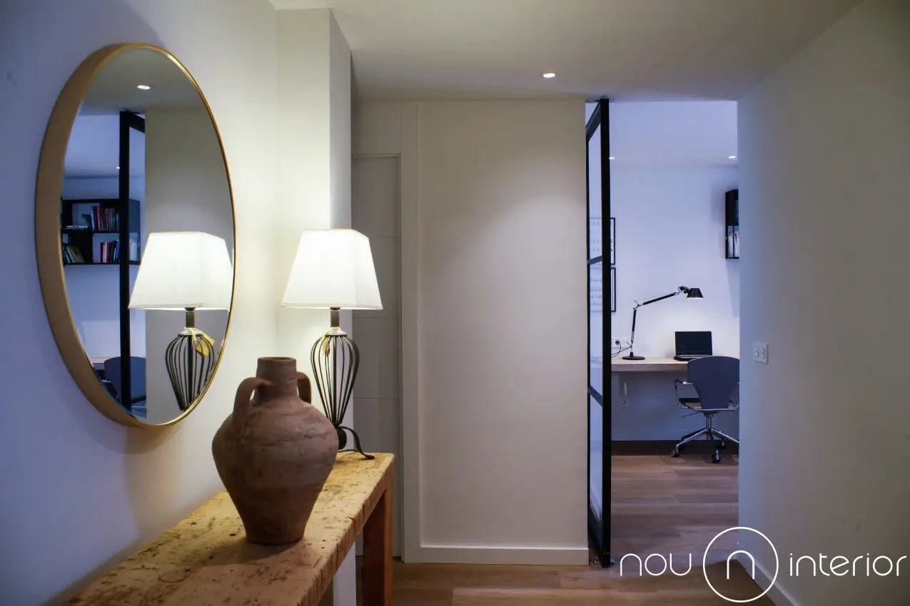 Colocamos algunas de las puertas de la casa en aluminio y cristal. Con esta solución cedimos privacidad, pero conseguimos aumentar la luz natural y ampliar visualmente los espacios.